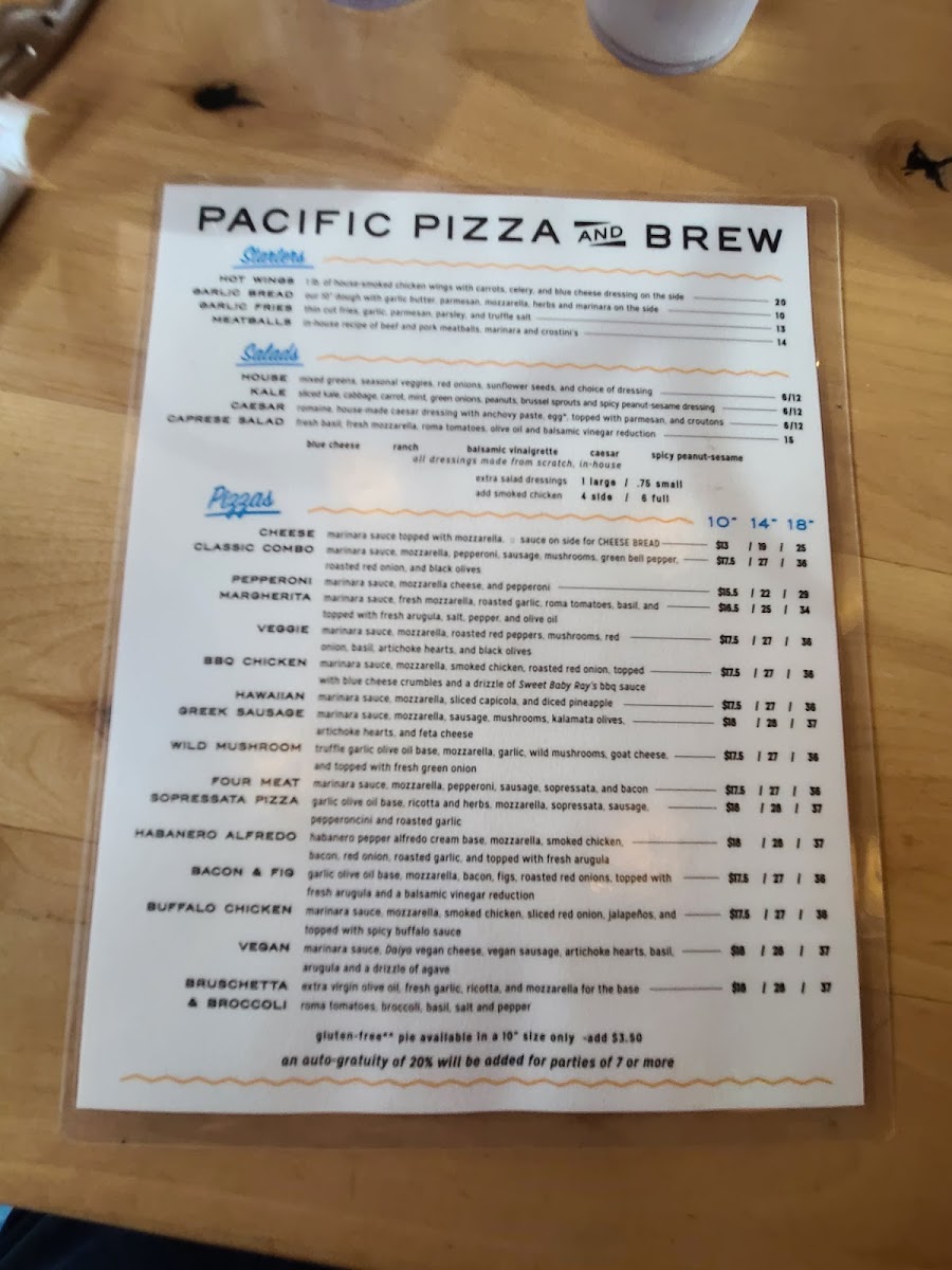Welcome to Pacific Pizza & Brew, the place where flavor meets craft brews in the heart of Bend, Oregon. Their menu is a delightful mix of creative starters and classic pizzas that cater to all tastes. Kick off your meal with their mouth-watering Hot Wings or savory Garlic Fries, both brimming with bold flavors. For those in the mood for something lighter, the Full House Salad is a refreshing choice, topped with vibrant veggies and sunflower seeds.
